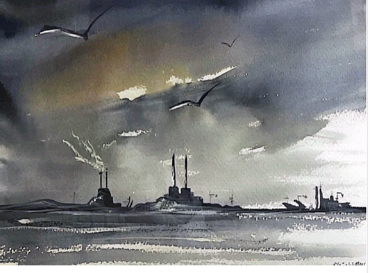 Original Art-Watercolour - Blue Sky Day overlooking Sandymount Beach
